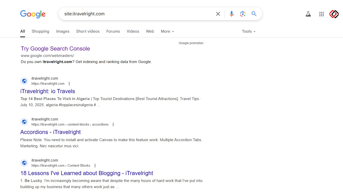 itravelright.com is a publication, news and Best Travel Tips website. The site is built on a 23 years old domain, 132 Backlinks, and is indexed in Google & Domain Valued in $2,128 USD.
