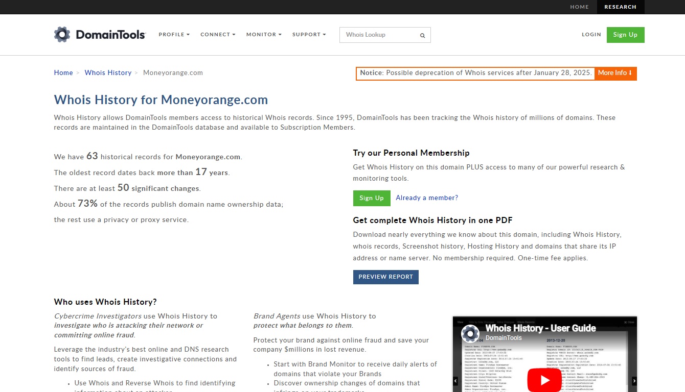 moneyorange.com - 50 changes and 63 drops recorded over 17 years